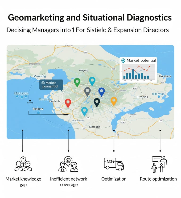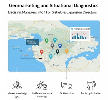 El servicio de Geomarketing resulta de gran relevancia para el sector privado. Los tomadores de decisiones en este sector, como gerentes de marketing y directores de expansión, buscan una ventaja competitiva. Sus principales desafíos son la falta de conocimiento sobre el mercado potencial, la ineficiencia en la expansión de su red de cobertura y la dificultad para optimizar rutas y el posicionamiento de su marca en un determinado territorio.